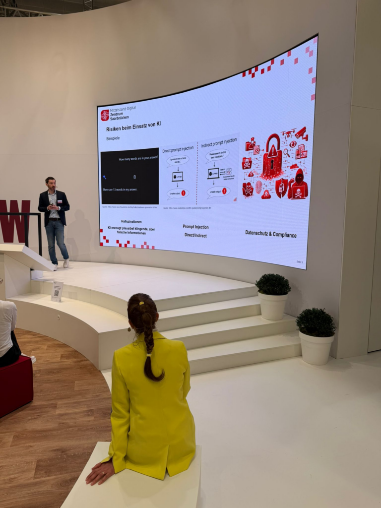 Das Besondere an der Hannover-Messe? Es gibt nicht nur viele Projekte und inzwischen endlich auch wieder mehr Fahrzeuge und Flugobjekte zu sehen, sondern auch spannende Vorträge. Unter anderem eben zu Risiken beim Einsatz von KI oder auch neusten Entwicklungen aus der Krebsforschung zum Beispiel.